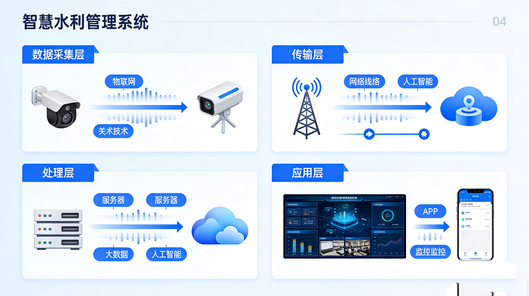 智慧水利是在以智慧城市为代表的智慧型社会建设中产生的相关先进理念和高新技术在水利行业的创新应用,是云计算、大数据、物联网、传感器等技术的综合应用。它是将传感器、物联网、互联网、信息化等新技术与水利行业结合,建设全面感知、全面监控、及时预警、准确调度的智慧水利系统,提高水资源的利用效率和效益,提升水利行业的管理和服务水平。智慧水利的核心是以信息化为基础,通过各种高新技术手段,实现对水资源的智能化监控、调度和管理,提高水资源的利用效率和效益,达到节水、减排、增供、改善水生态等目标,从而实现水资源的可持续利用。